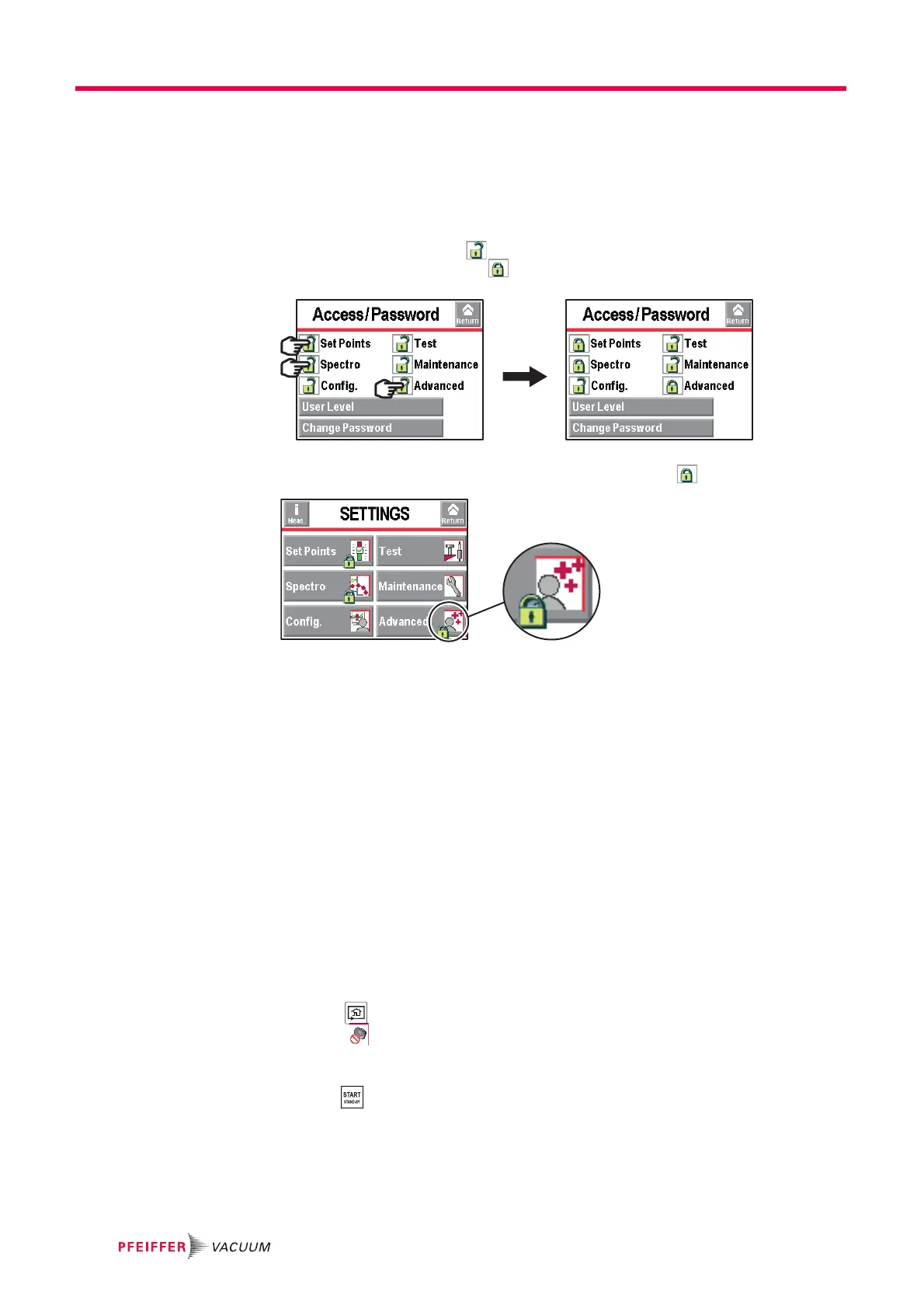 Fig. 36: Example: Locking the Set Points, Spectro and Advanced menus