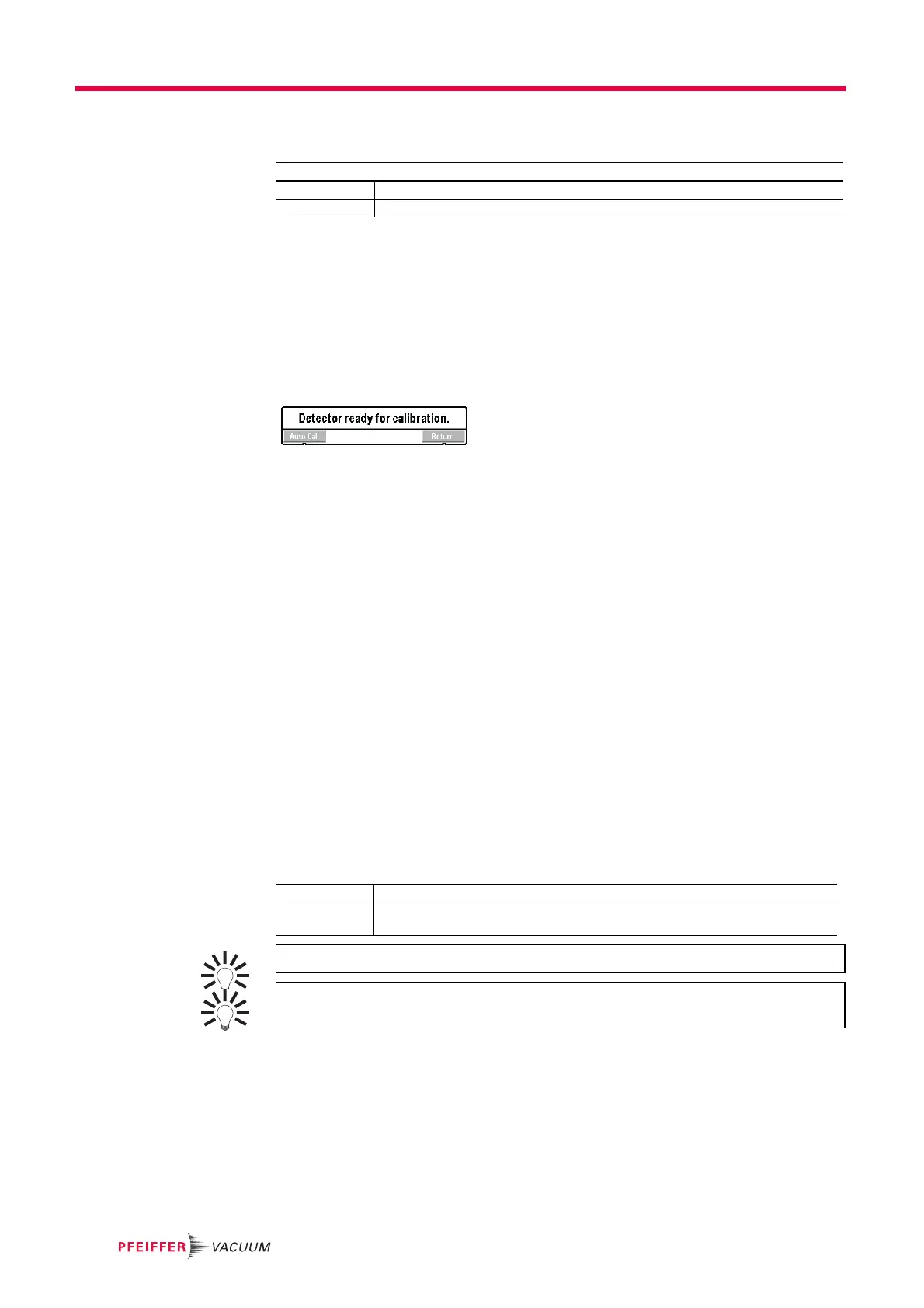 if calibration = ’manual’. The calibration control is performed with the leak detector's in-