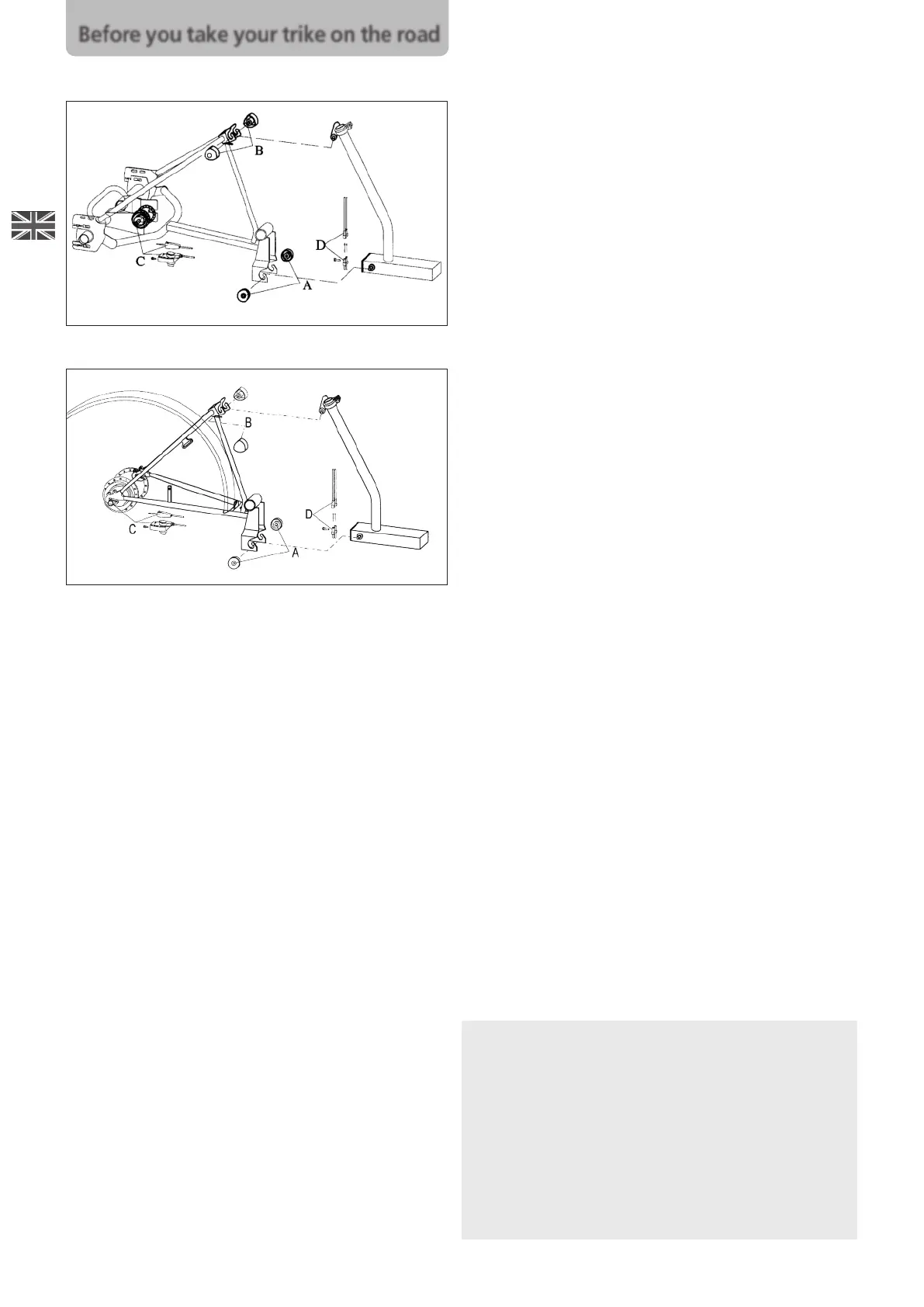 All screws and nuts must sit tightly! Your trike was