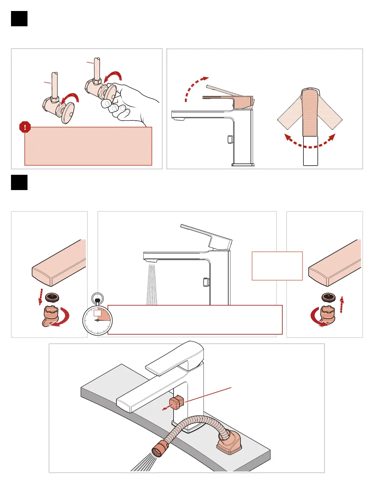 Deje correr el agua caliente y fría durante al menos 15 segundos cada una.