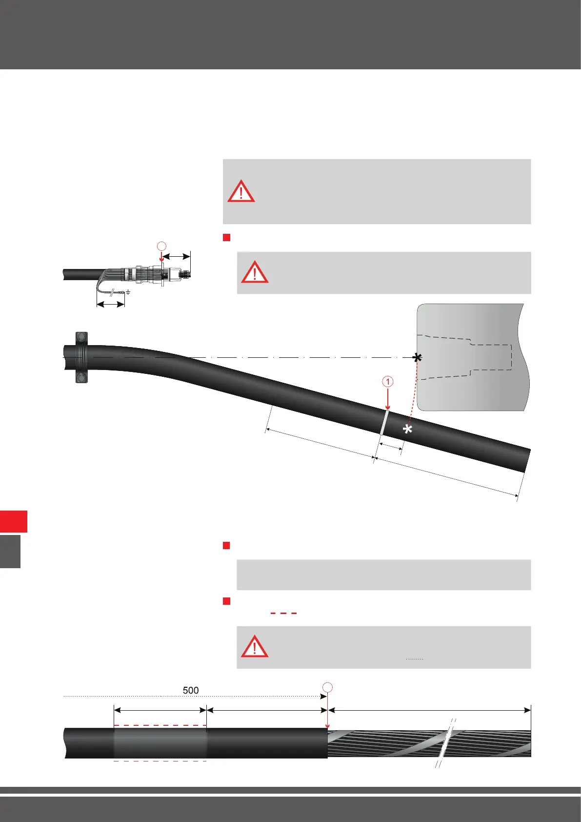 be removed up to 500 mm behind the "jacket cut" (1) (e.g. by