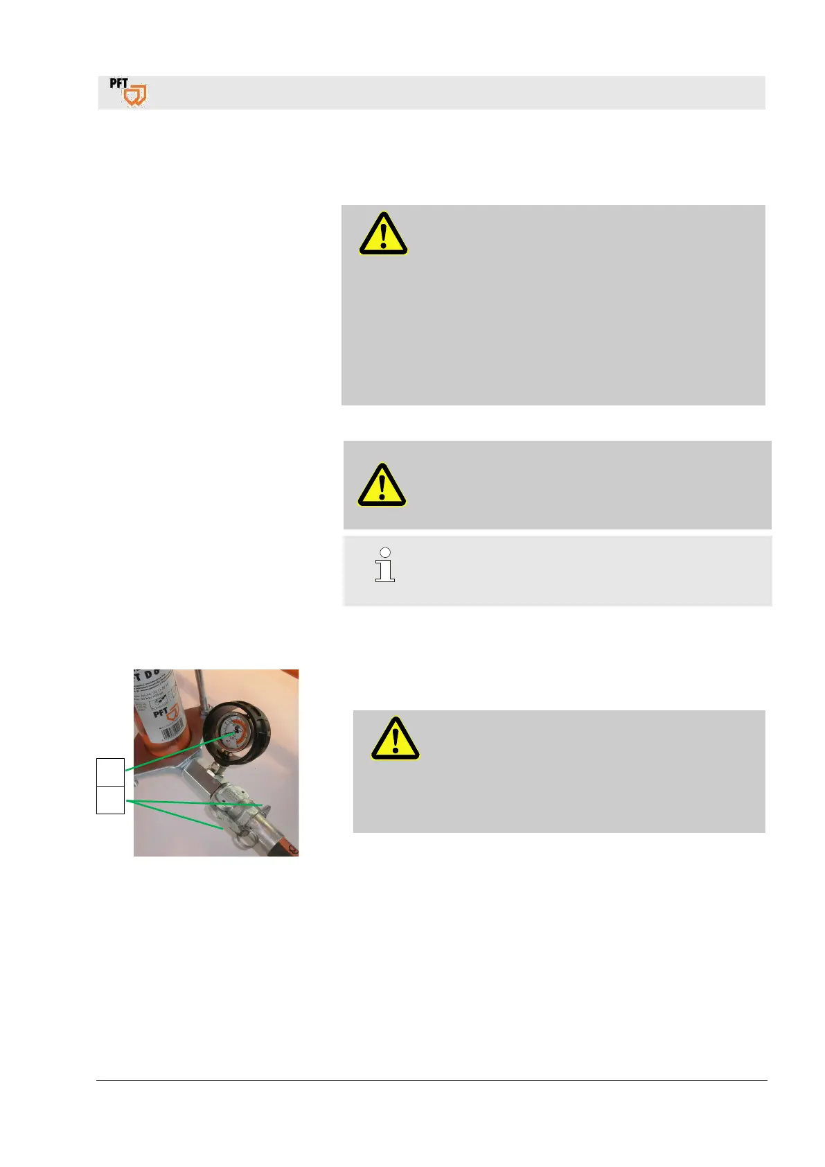 1. Check at the mortar pressure gauge (1) if the mortar pressure is