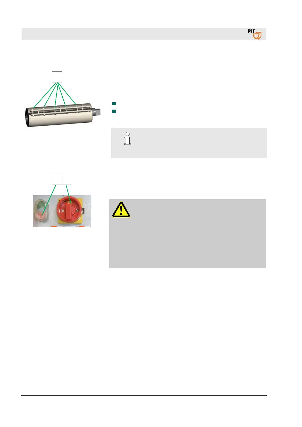 1. Switch off the machine, press the red push button (1) control