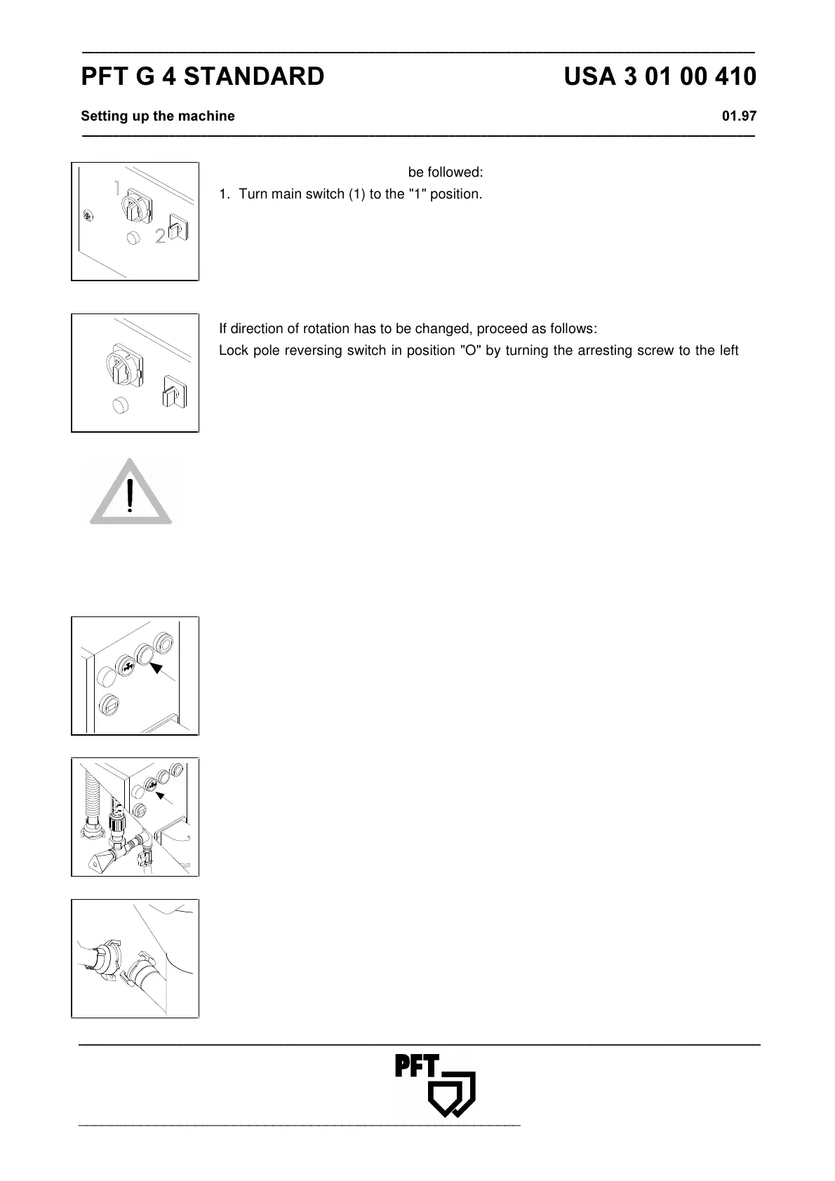 Lock pole reversing switch in position "O" by turning the arresting screw to the left or