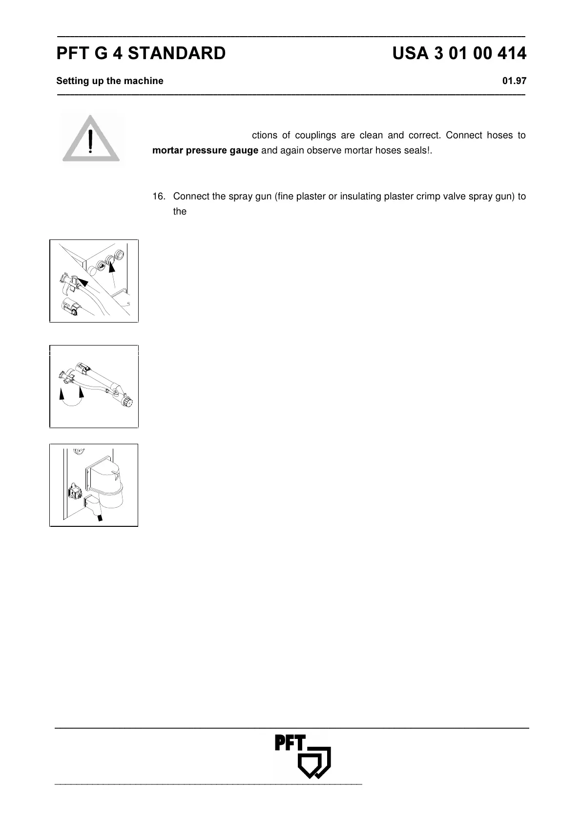 PRUWDUSUHVVXUHJDXJH and again observe mortar hoses seals!.