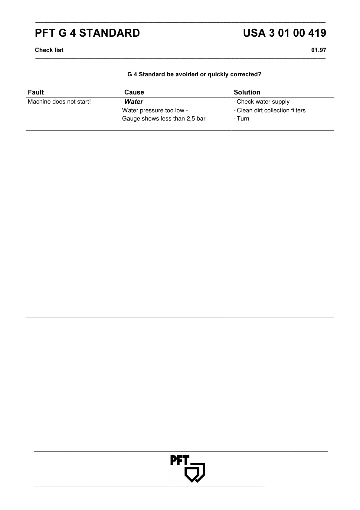 Gauge shows less than 2,5 bar - Turn the switch of water pump to