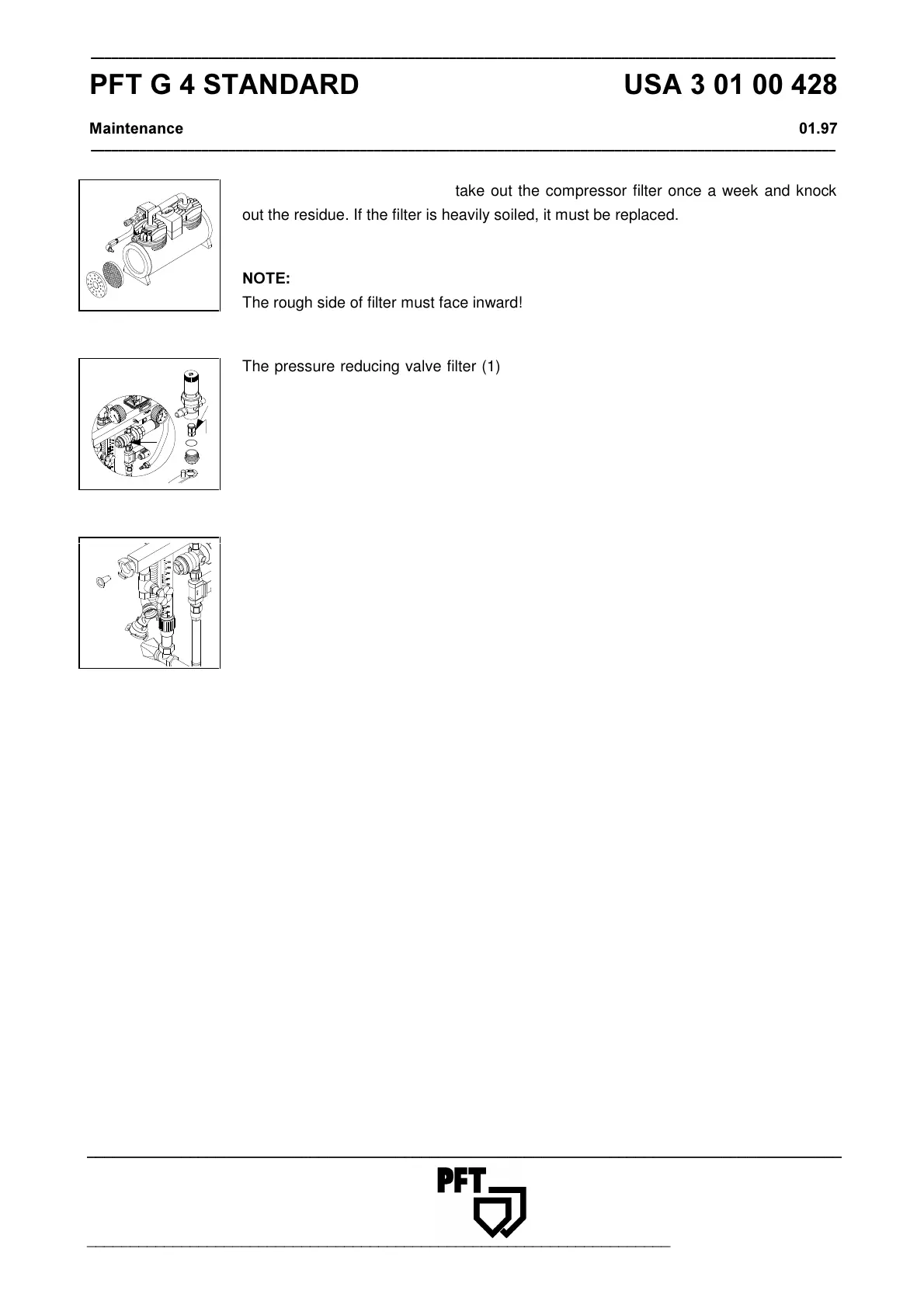 The pressure reducing valve filter (1) should be taken out and cleaned at least every
