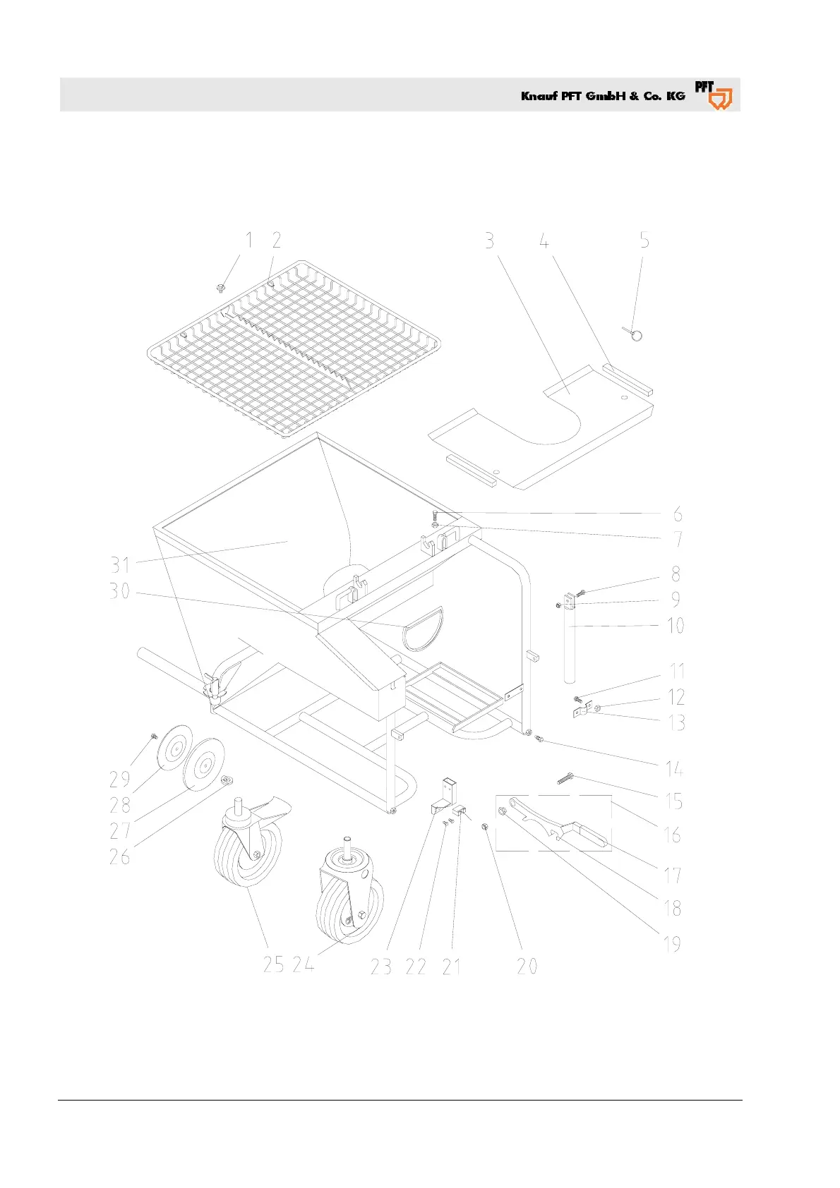 Pos: 10.2 /KN2006-Pr ojekte/Knauf/Ersat zteilliste/Misc hpumpe PFT G4/1.1 Ersatz teilzeichnung/li ste Materialbehälter und Rahmen @ 13\mod_1152693513 115_293361.doc @ 298859