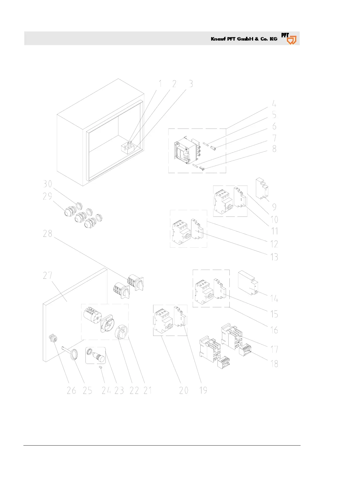 Pos: 10.10 /KN2006-Pr ojekte/Knauf/Ersa tzteilliste/Misc hpumpe PFT G4/1.1 Ersat zteilzeichnung/li ste Schaltschrank @ 36\ mod_1177399473233 _293361.doc @ 446756