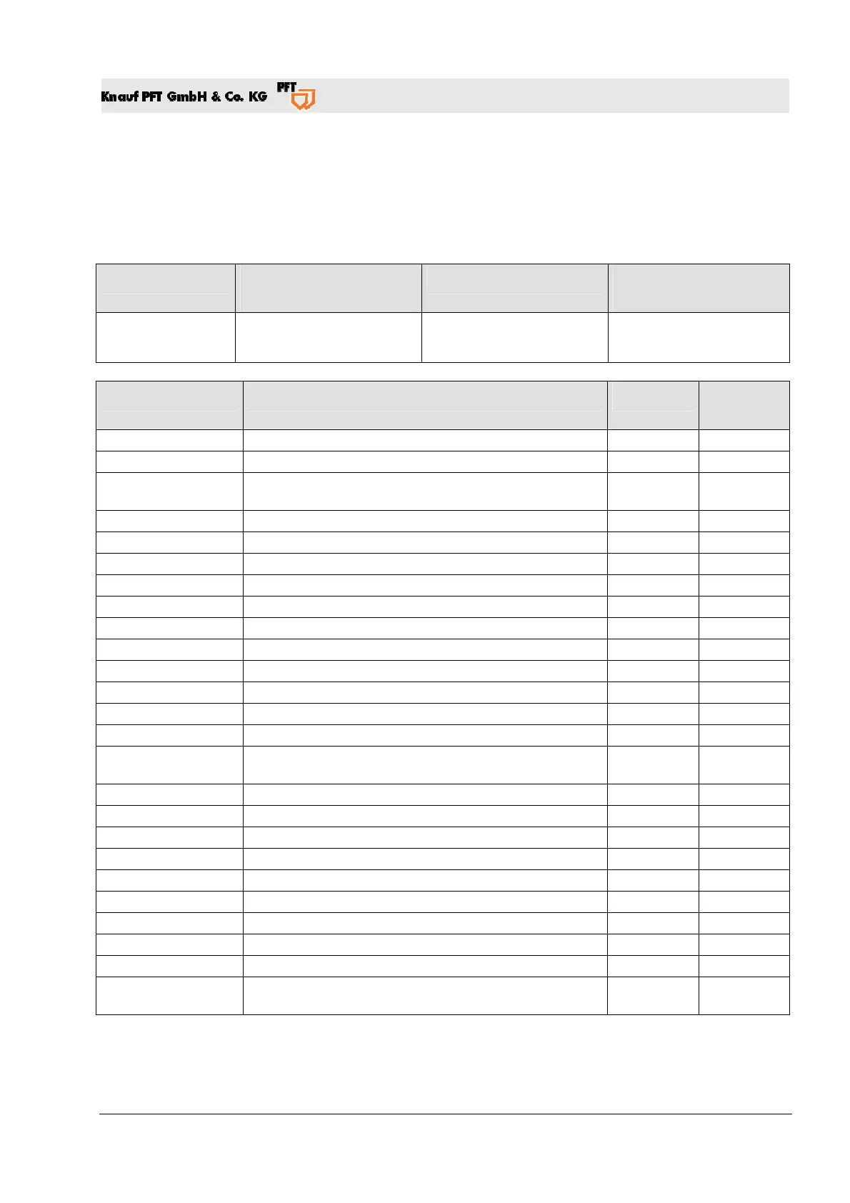 Pos: 11.4 /KN2006-Pr ojekte/Knauf/Anha ng/Mischpumpe PFT G4/1.1 Checkliste für jährlic he Sachkundigen-Pr üfung @ 13\mod_11526998 23584_293361.doc @ 29886 8