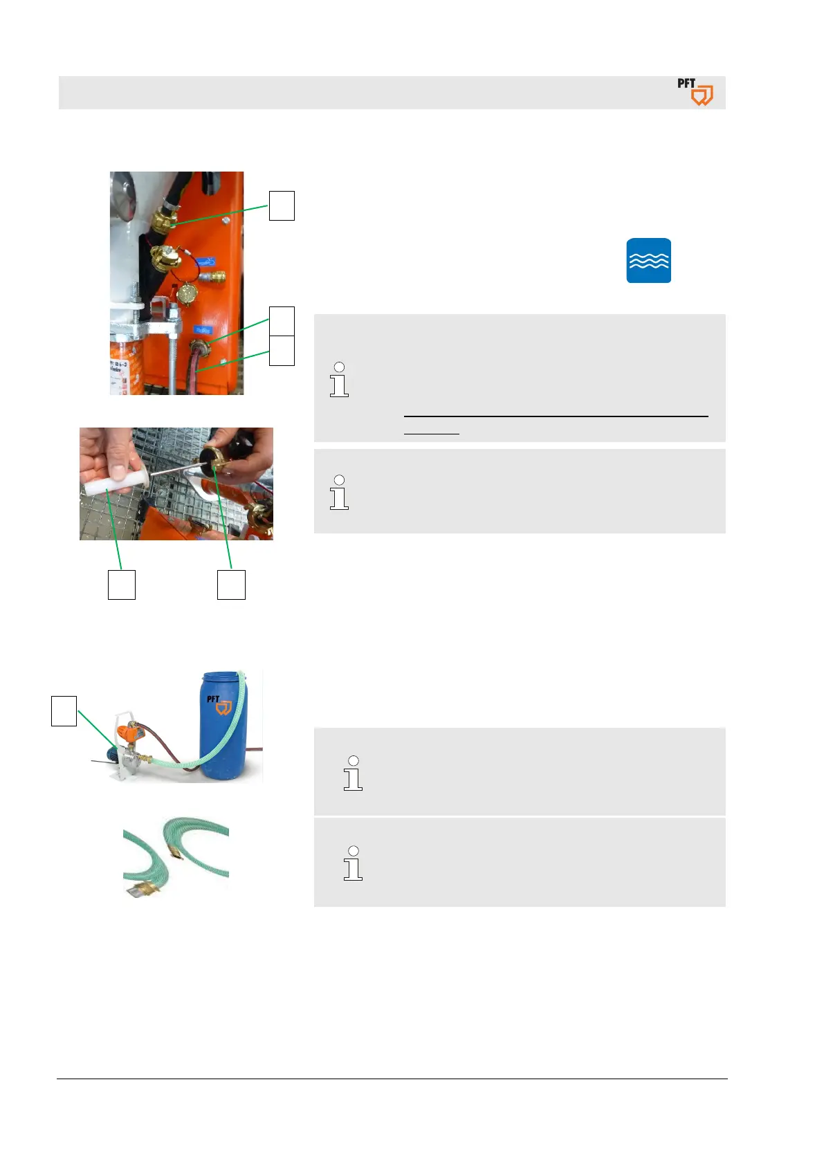 2. Clean and bleed the water hose (2) for the water mains supply.