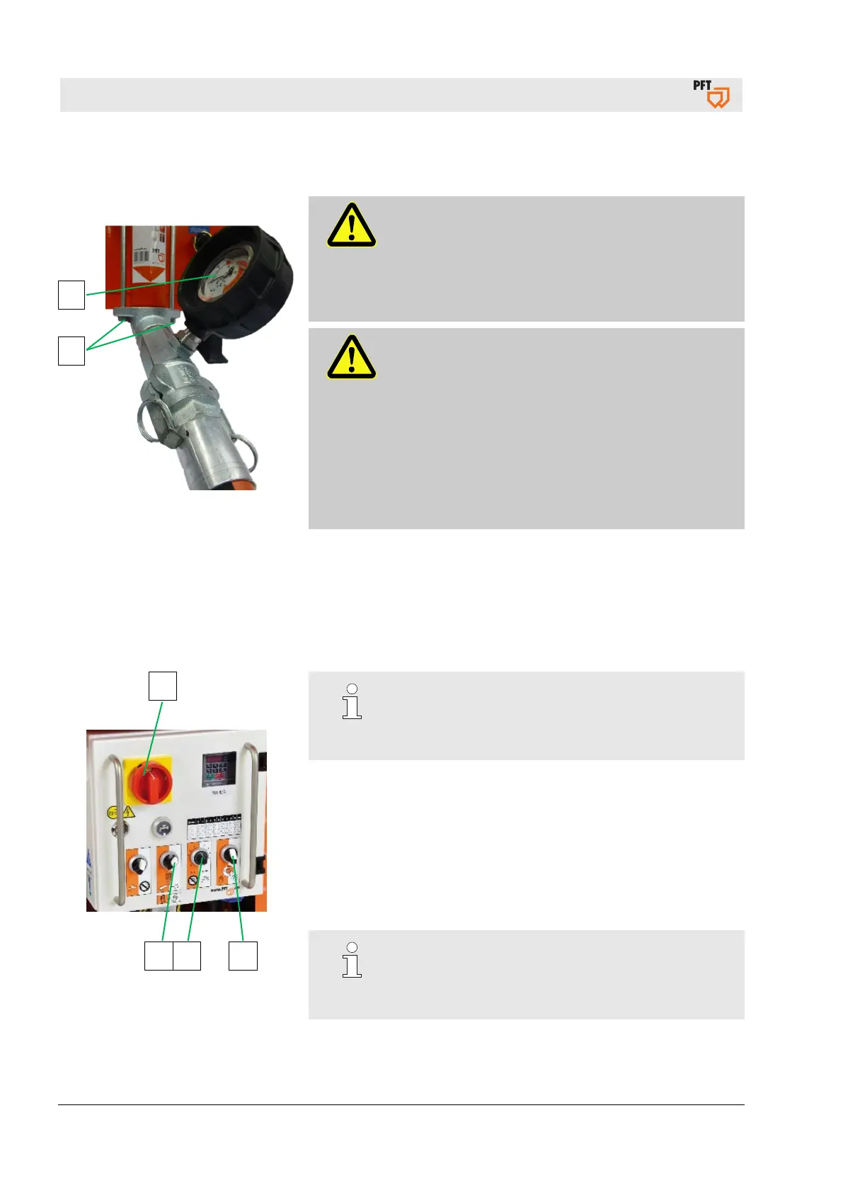 fallen to “0 bar”. If necessary, discharge any mortar pressure by