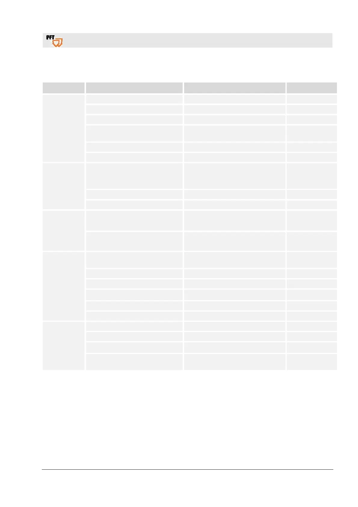 41.6 Table of faults