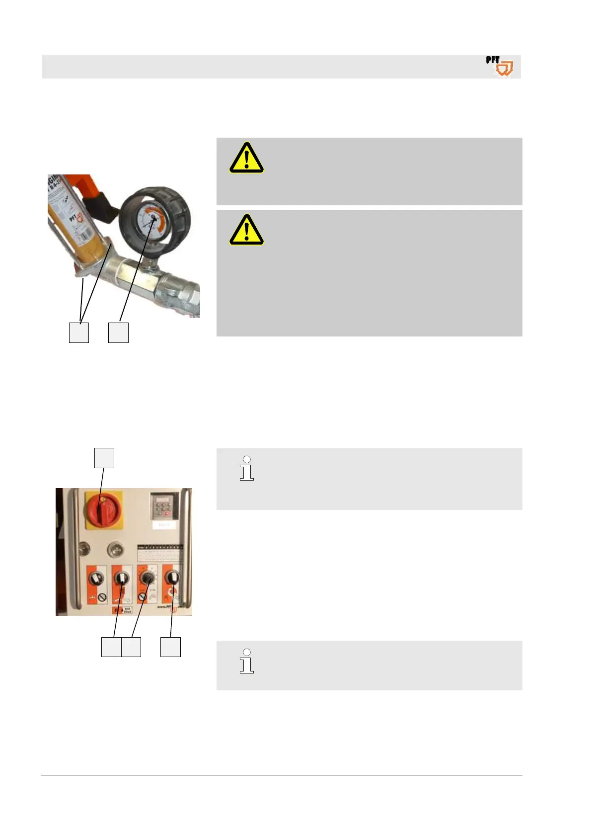 2. Check the mortar pressure gauge (1) if the mortar pressure has