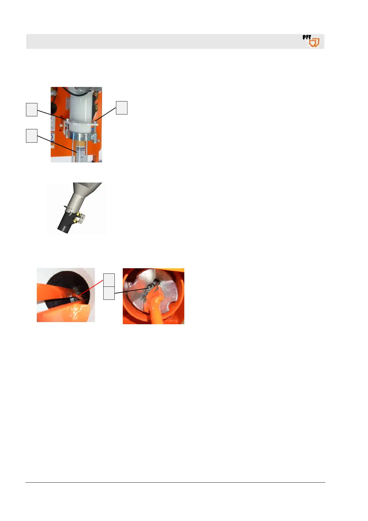 2. Remove the pump unit (2) with mortar pressure gauge and clean