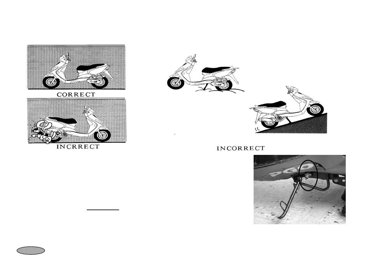 muffler is hot. Do not park your scooter on a slop or soft ground to