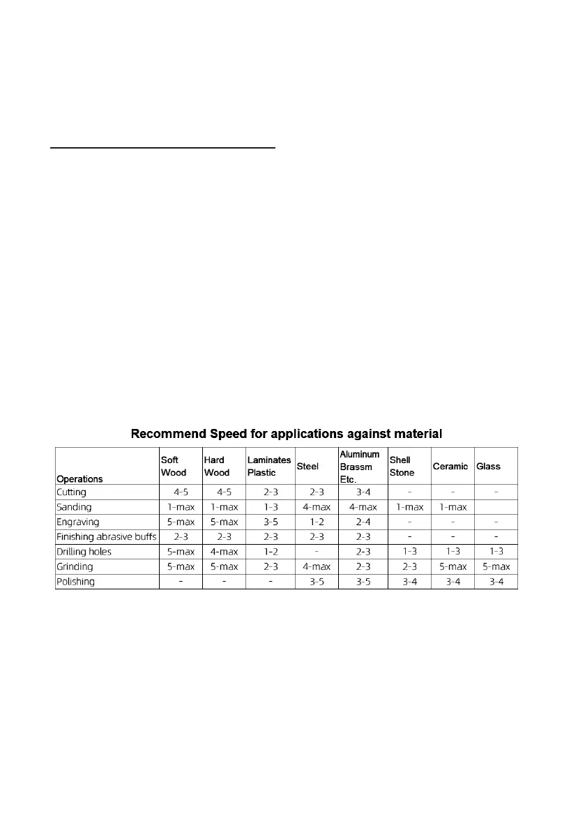 speeds not greater than 15,000 RPM to prevent damage to the brush from