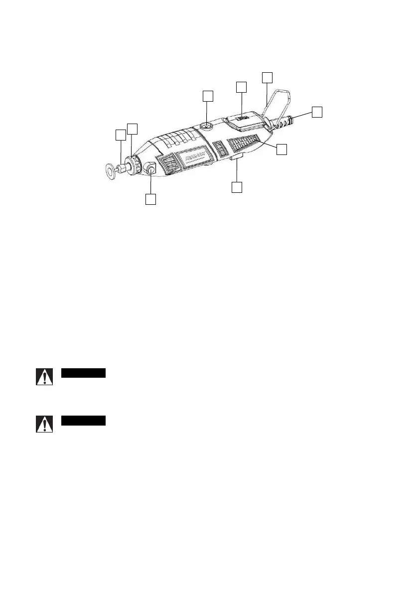 Always unplug Rotary Tool changing collets or service your Rotary