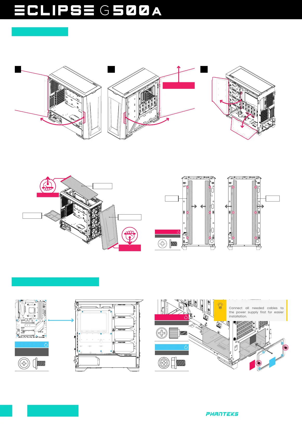 It is recommended to remove all external panels before starting the installation process. The G500A comes with storage cover panels