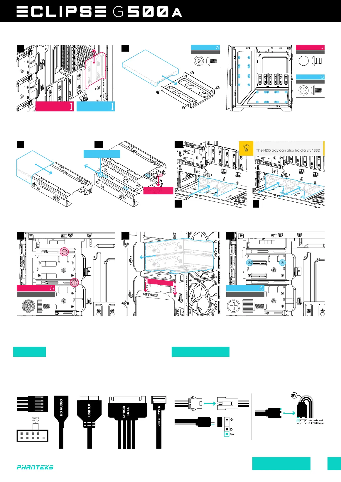 To lock the HDD bracket, use 2x Thumb