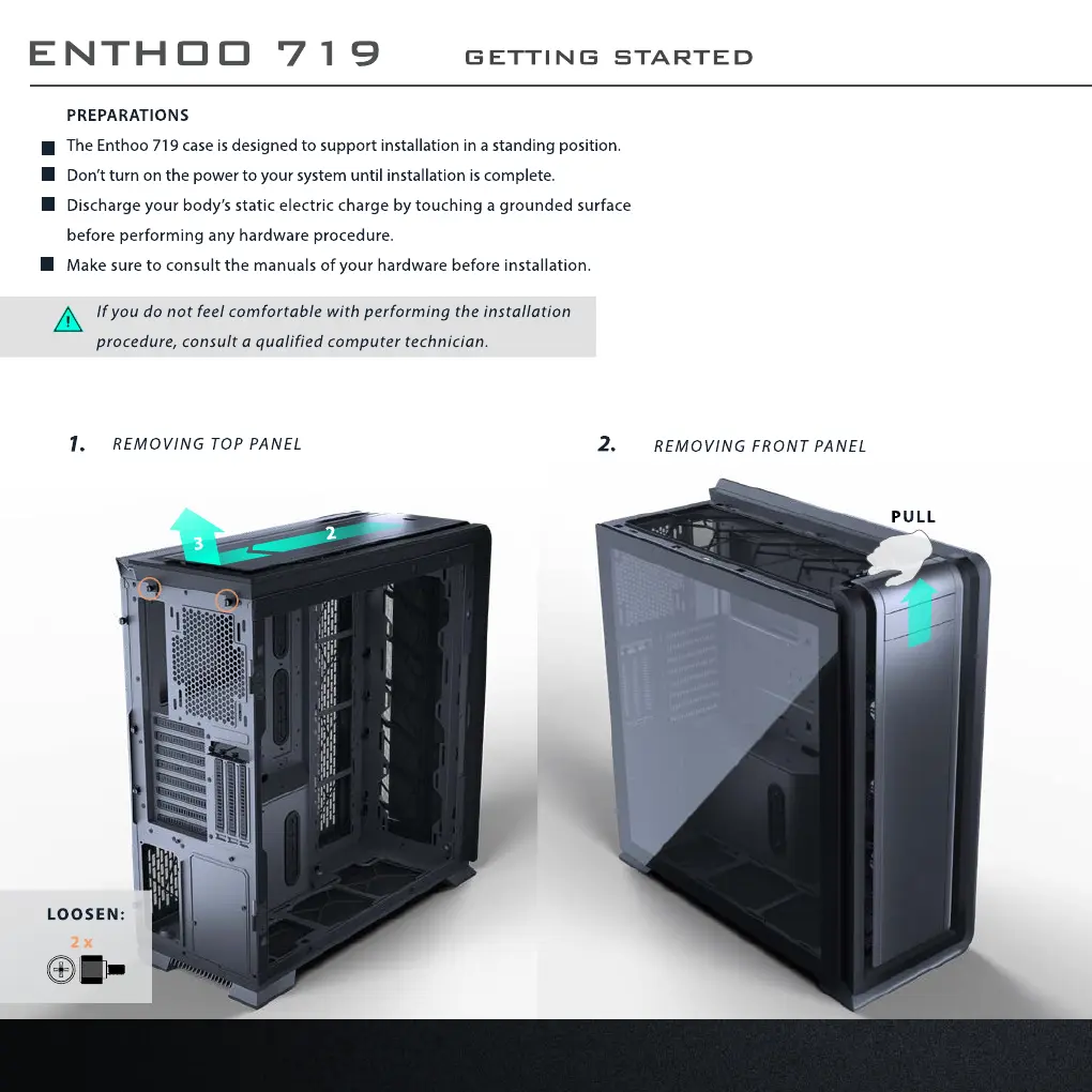 The Enthoo 719 caseis designed to support installation in a standing position.