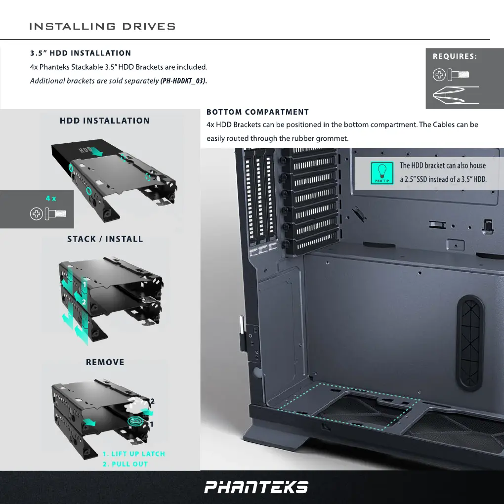 4x Phanteks Stackable 3.5" HDD Brackets are included.