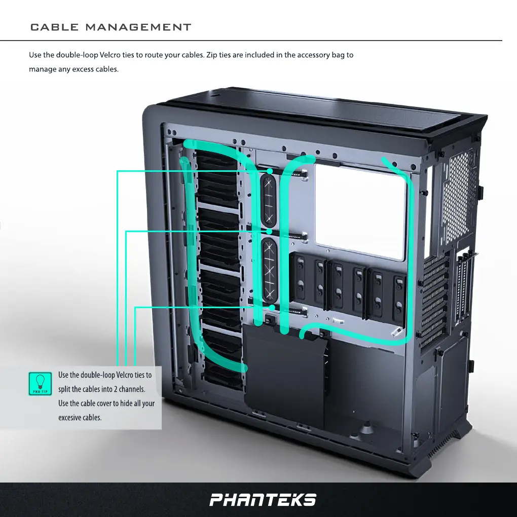 Use the double-loop Velcro ties to route your cables. Zip ties are included in the accessory bag to