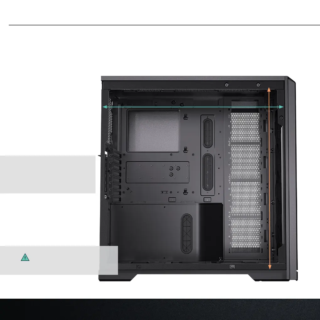 Some radiator clearances depend on other hardware installed. Subtracting the radiator and fan thickness shows the