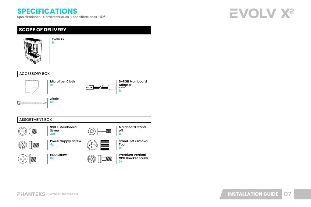 Spezikationen | Caractéristiques | Especicaciones | 规格