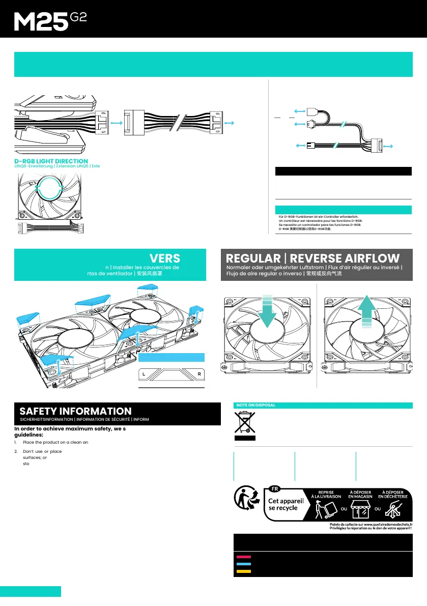 La direction de la lumière D-RGB commence du côté du connecteur sur le ventilateur.