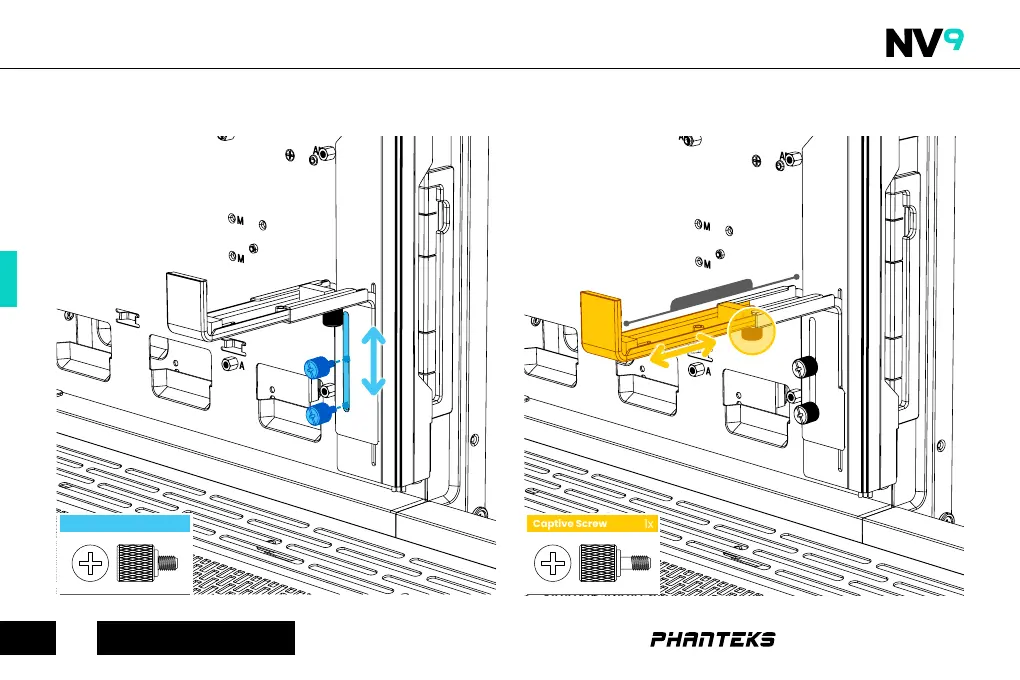 Phanteks NV9 - INSTALLING GPU BRACKET; Secure GPU Bracket; Adjust GPU Bracket