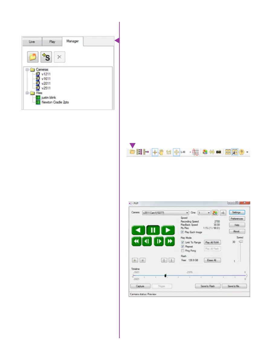 The ‘Play’ tab is used to review, edit, and save Cine files,