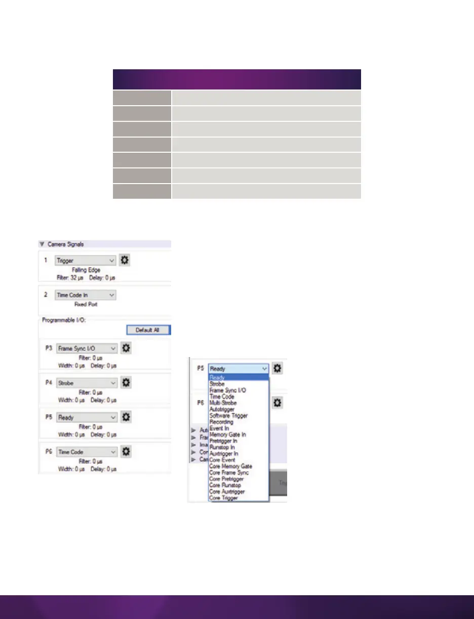 The ‘Camera Signals’ menu, located in the ‘Live’