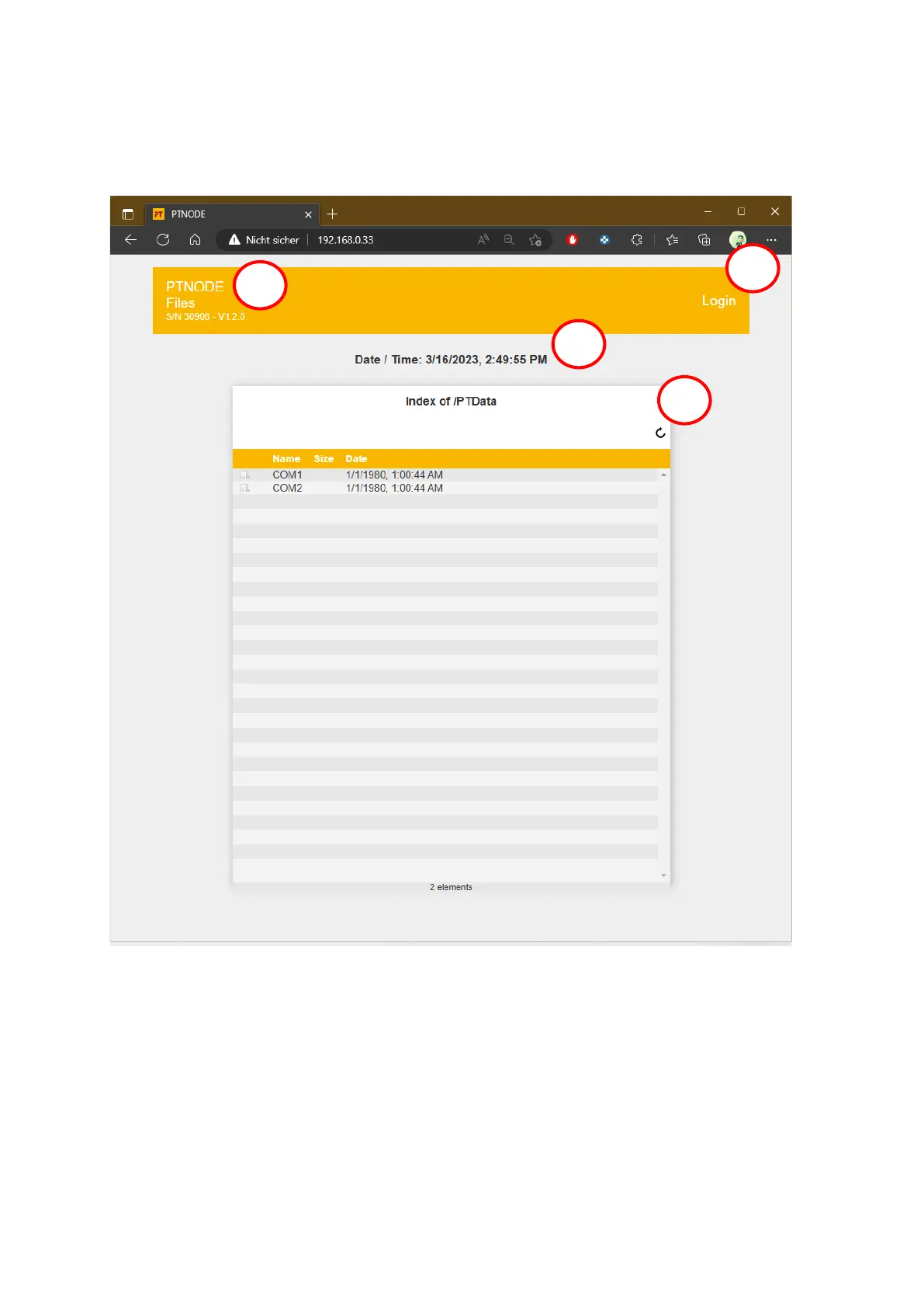 After entering the IP address, the file index is displayed. This shows all folders currently
