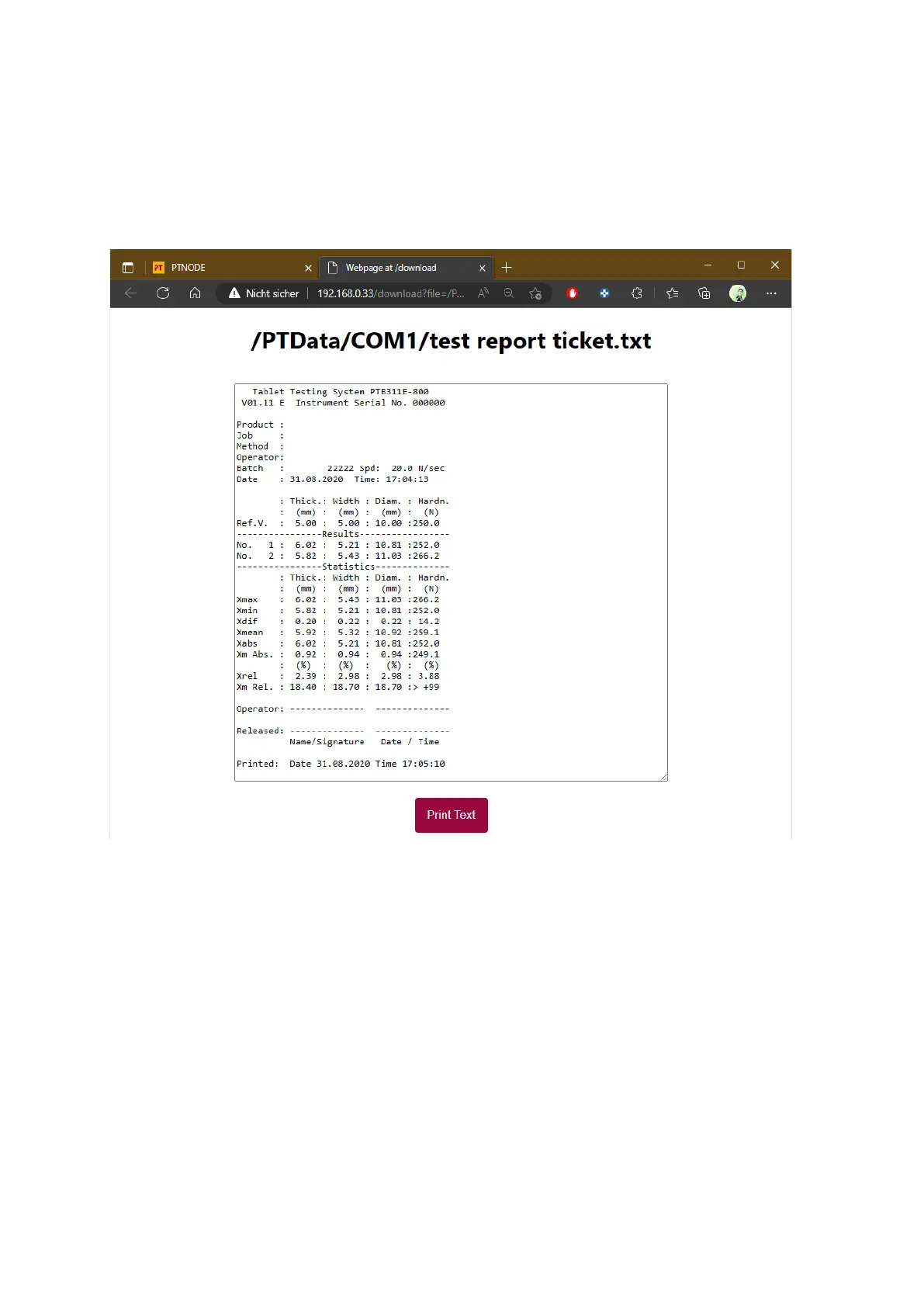 device, either directly or through a network. Click on “Print Text” to call up your operating