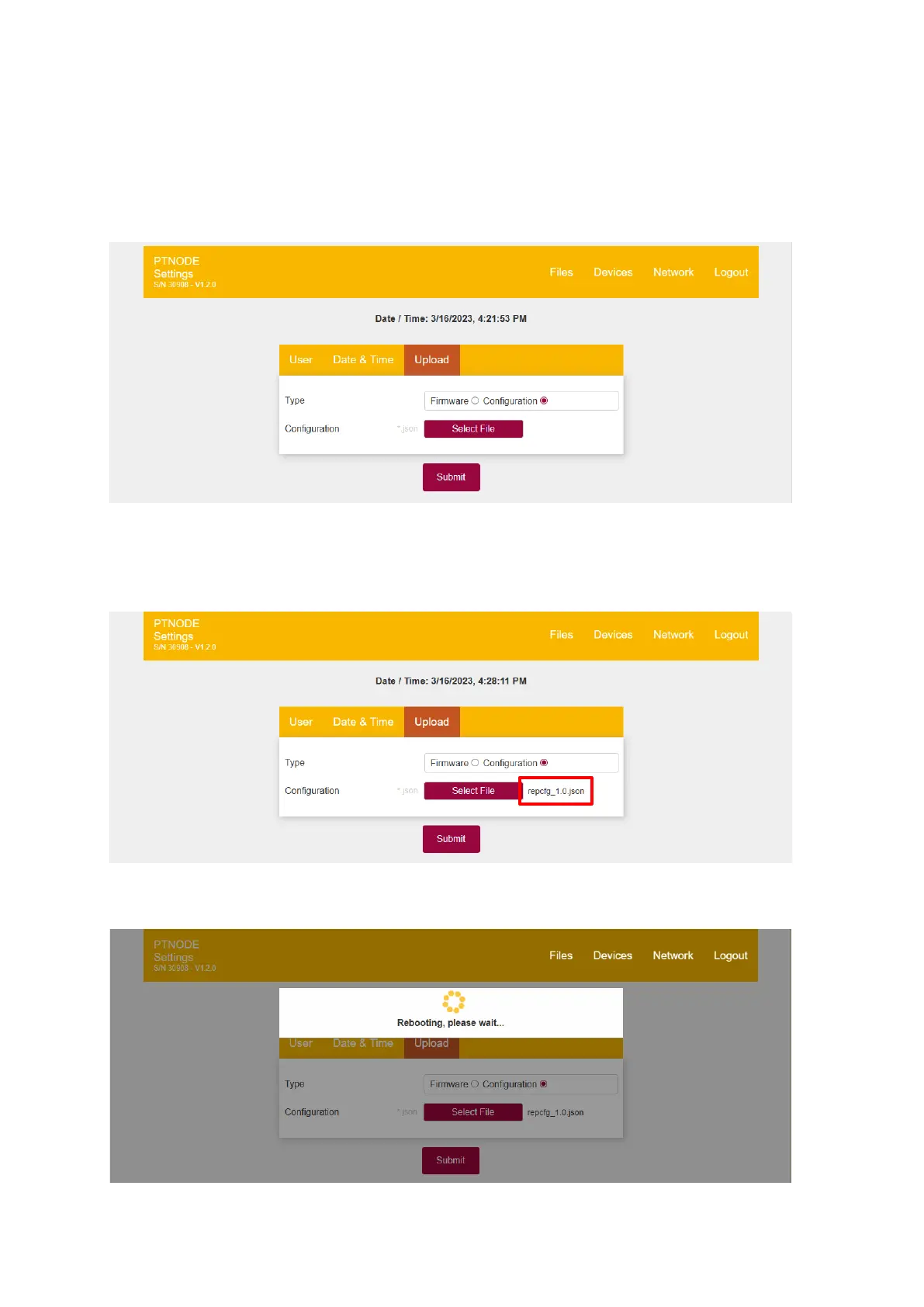 PT-Node will now apply the new configuration file and reboot: