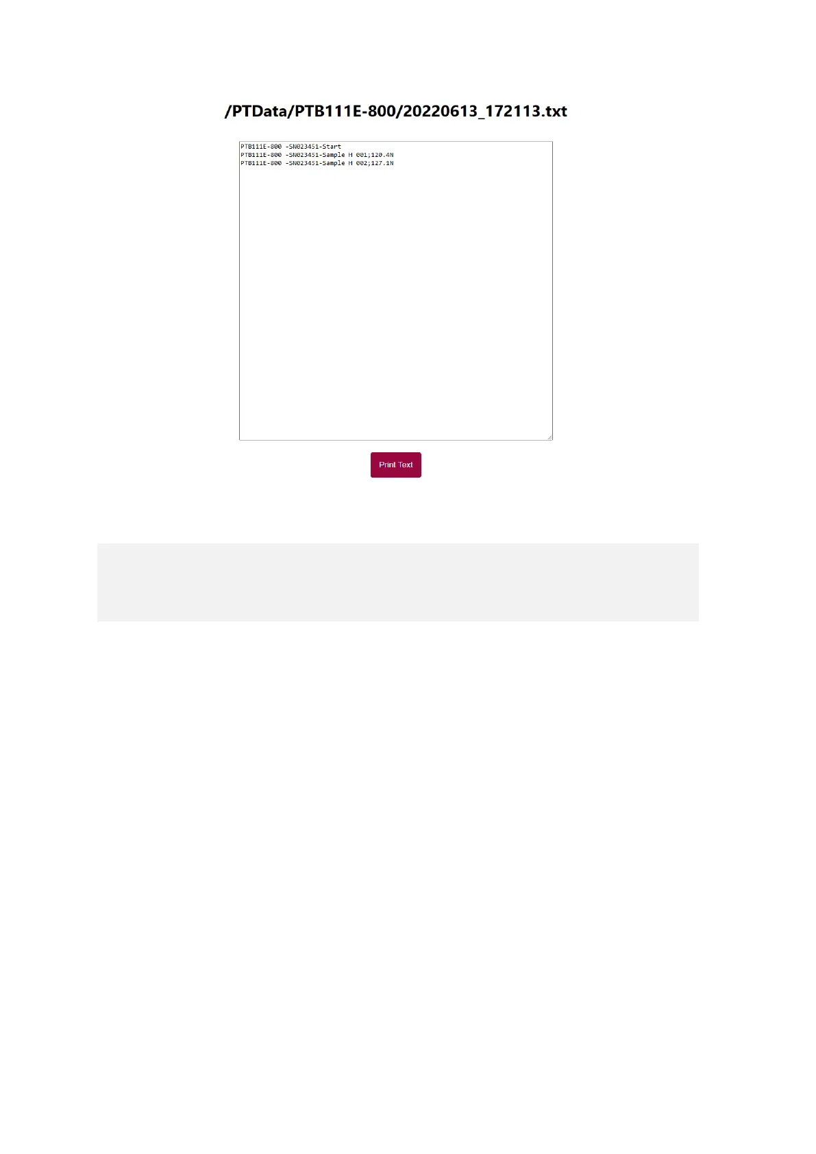Every string starts with the instrument model (“PTB111E-800”), followed by its serial