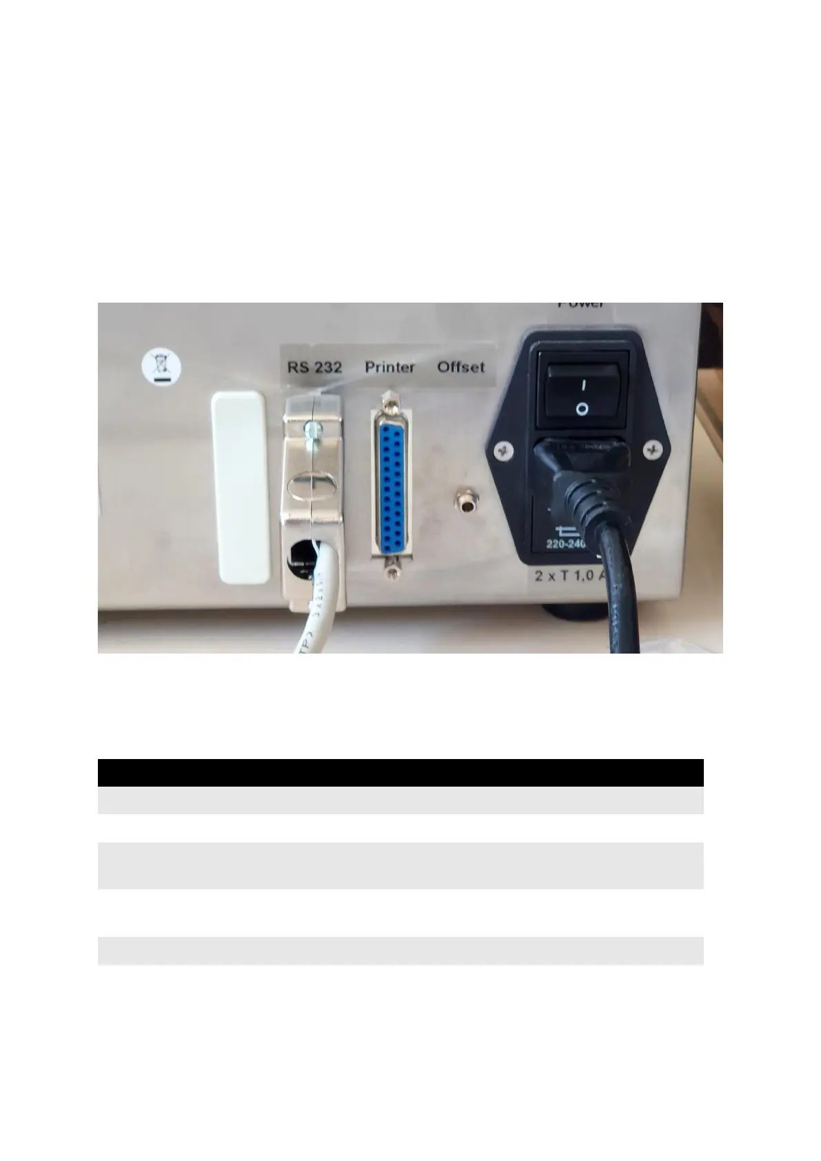 Serial 25pin D-Sub (male) plug labelled “RS232” on the