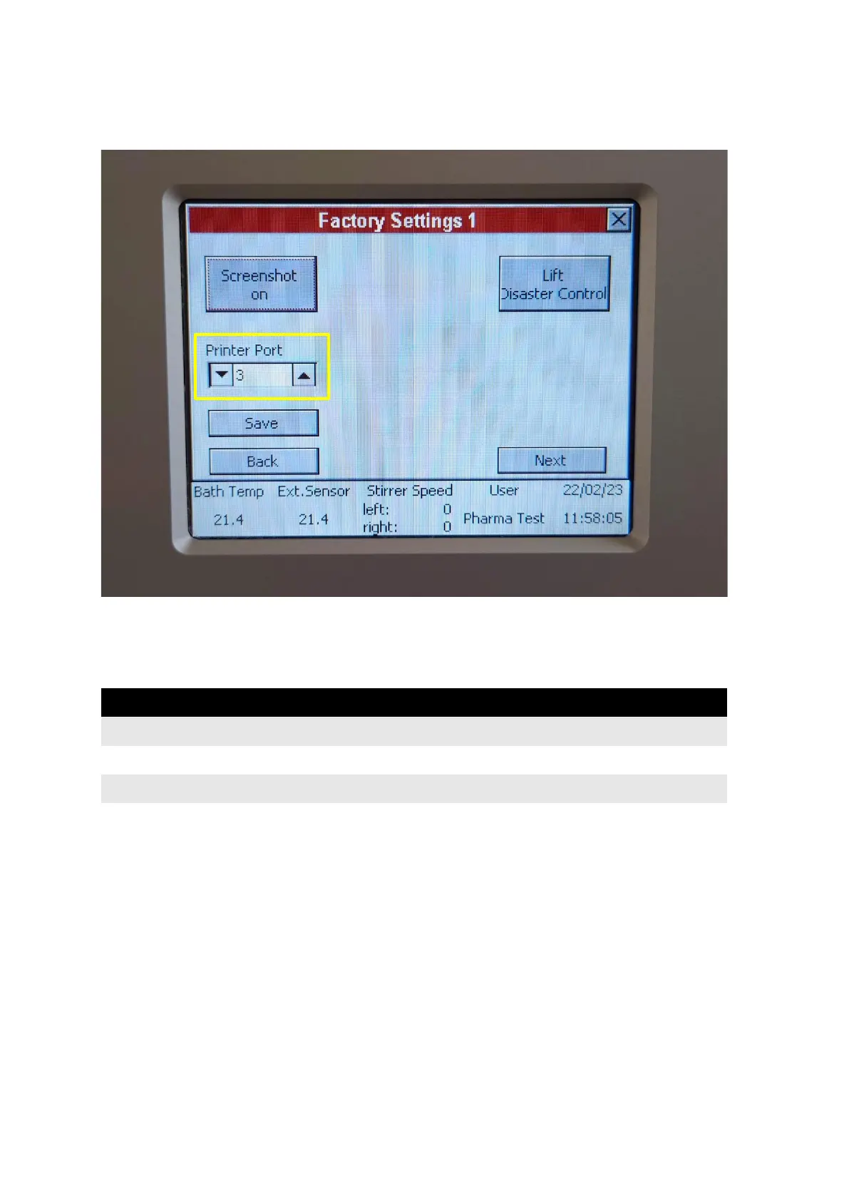 On the PTWS x20 instrument enter the settings menu. Then enter the factory settings menu.