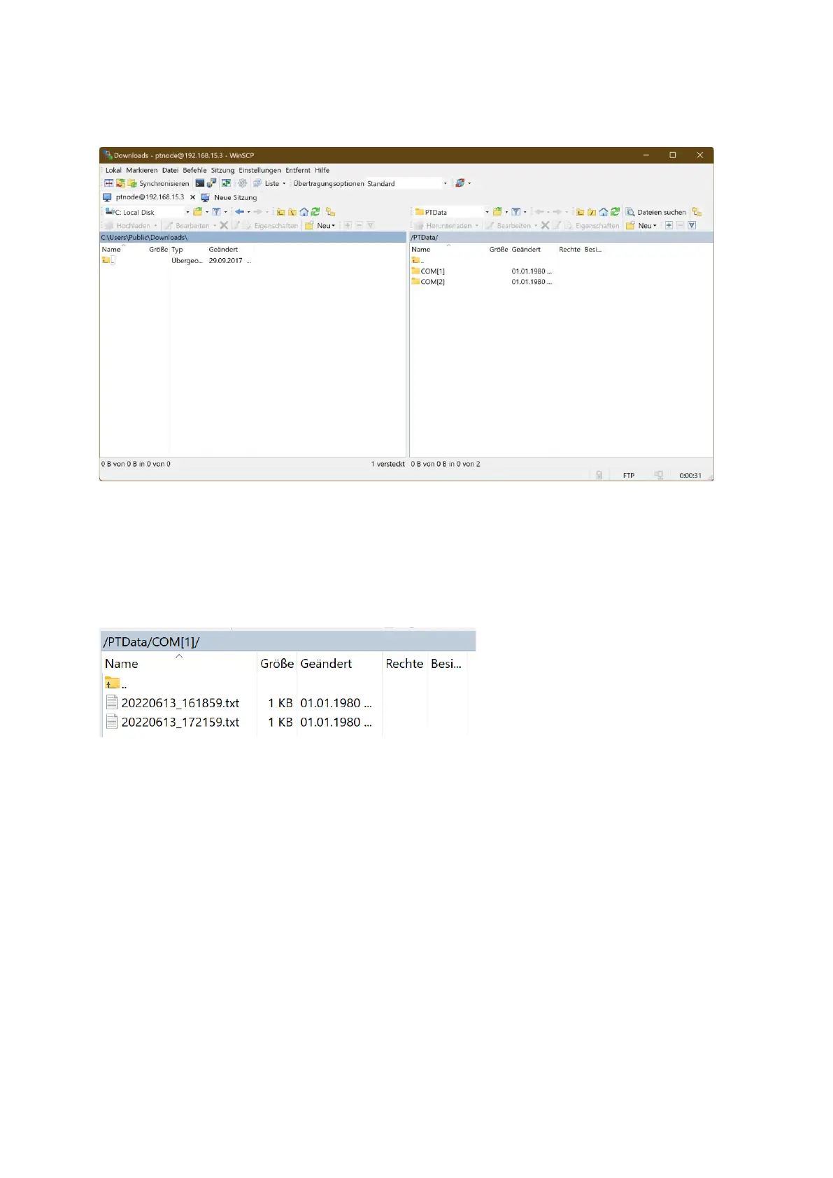After establishing the FTP connection you have access to the internal SD card of PT-Node