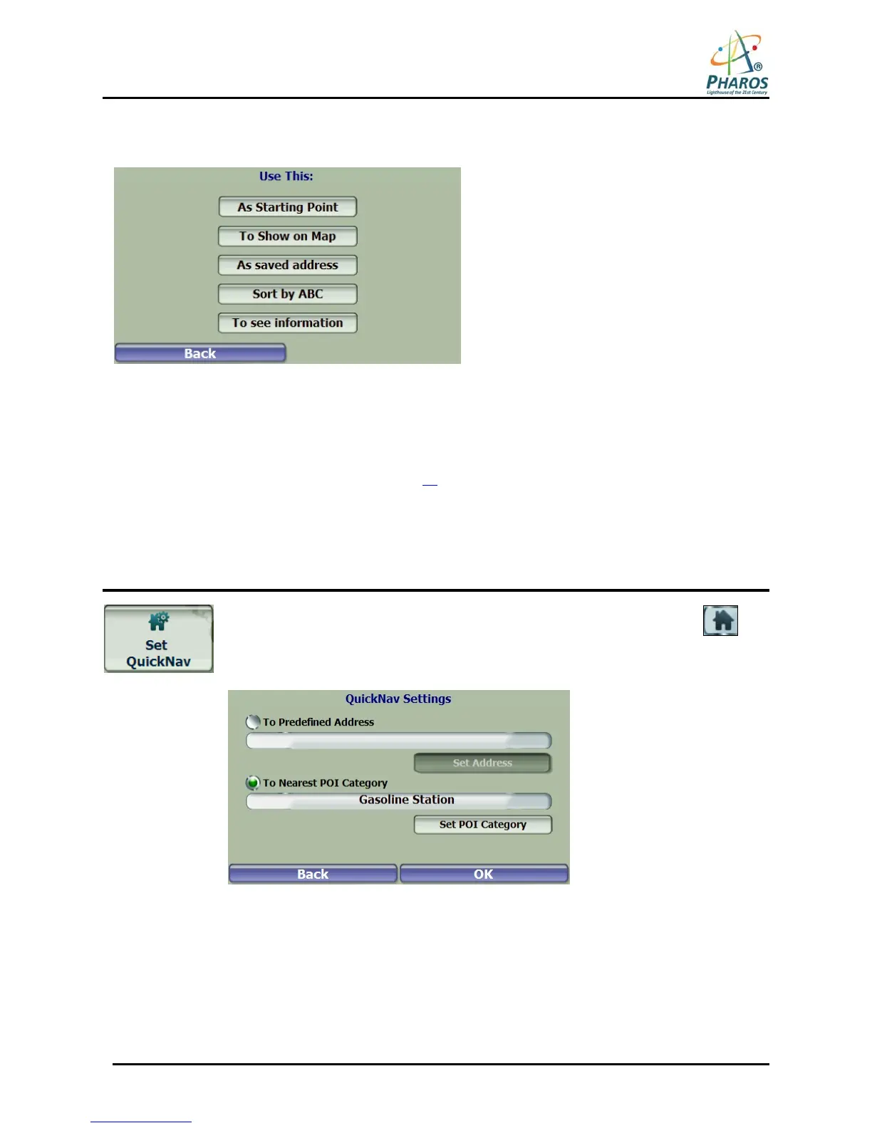 • As Starting Point, which designates the selected address as the route origin (Map Browsing mode