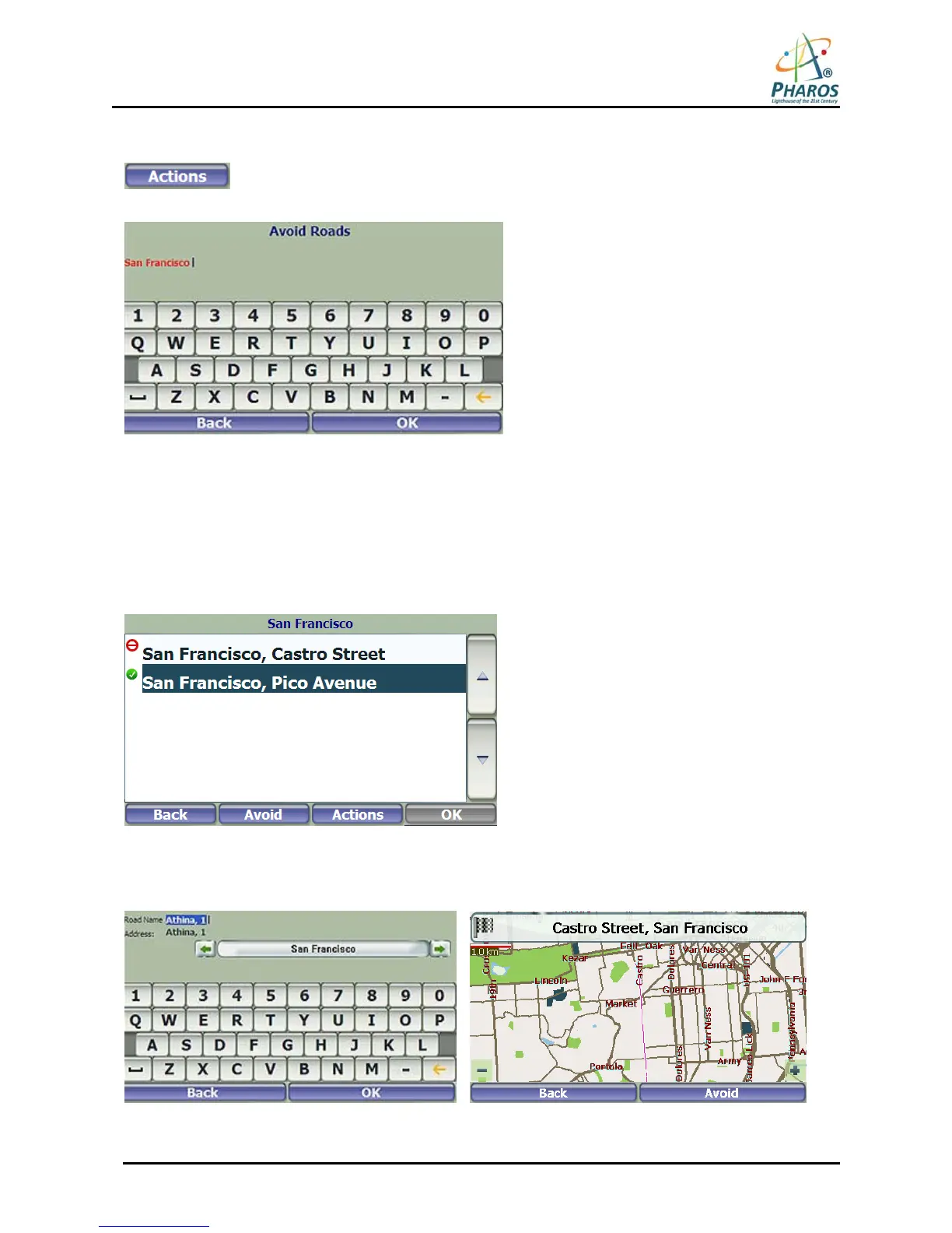screen, which lets you designate roads to avoid. From this screen, you can use the Allow or Avoid buttons