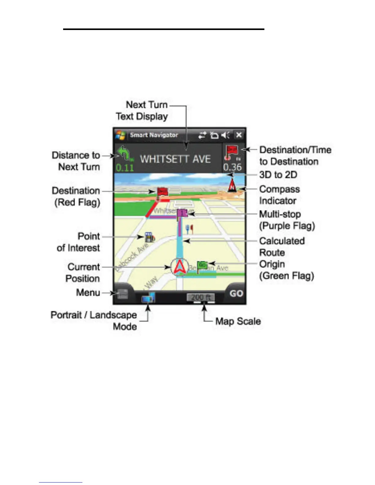 Pharos Smart Navigator - General Features of Smart Navigator; Anatomy of the Navigation Screen