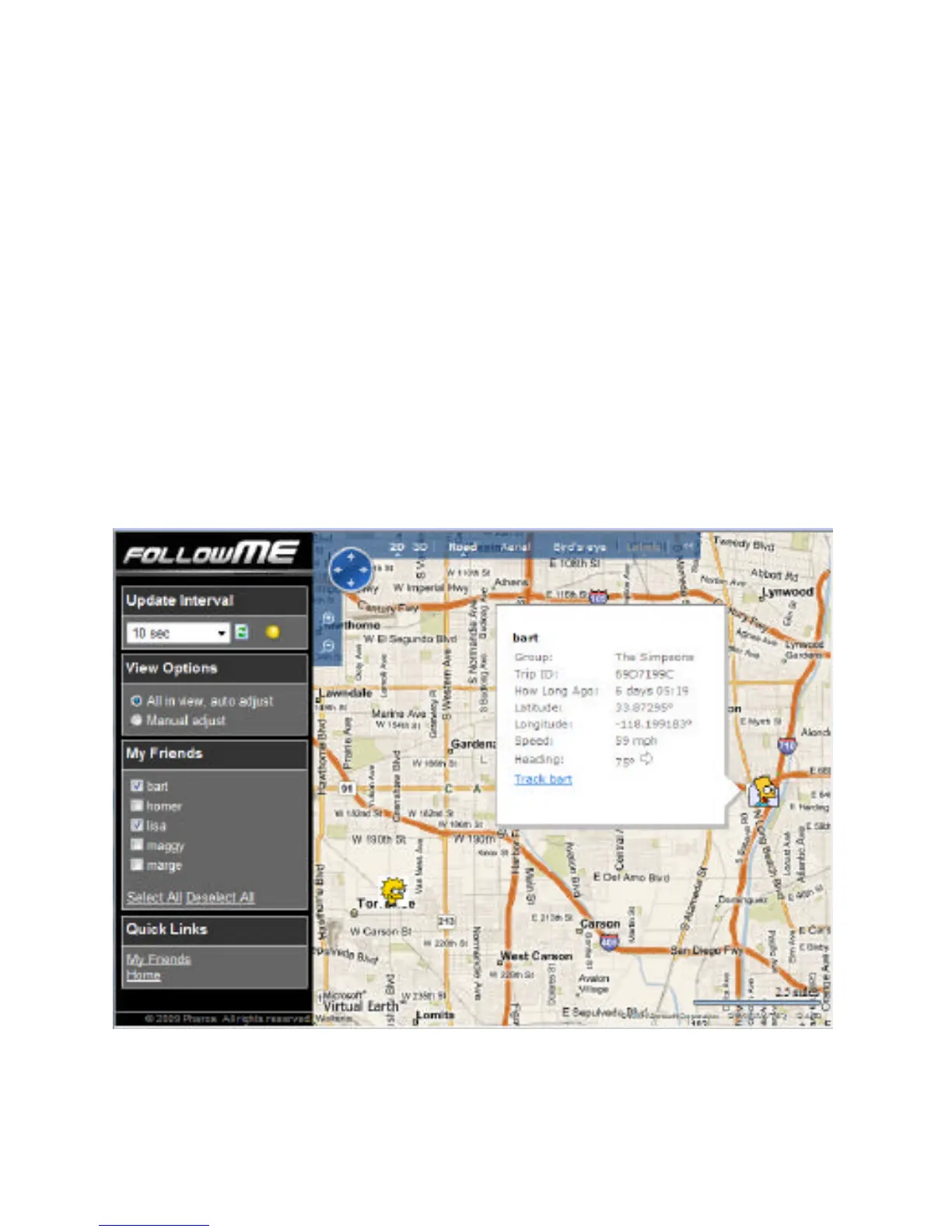 locations of two Follow Me friends, Bart and Lisa, appear on