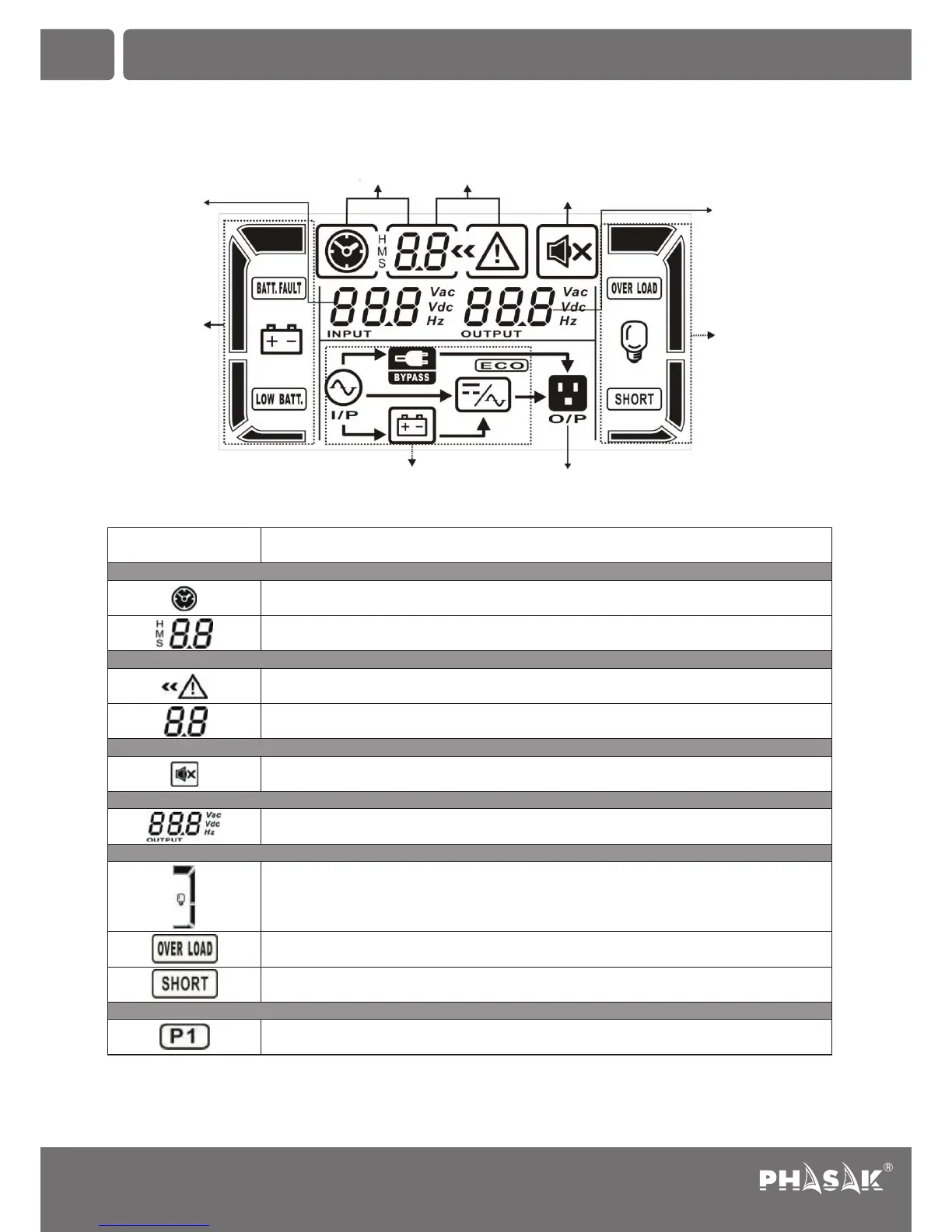 Vac: output voltage, Vdc: battery voltage, Hz: frequency