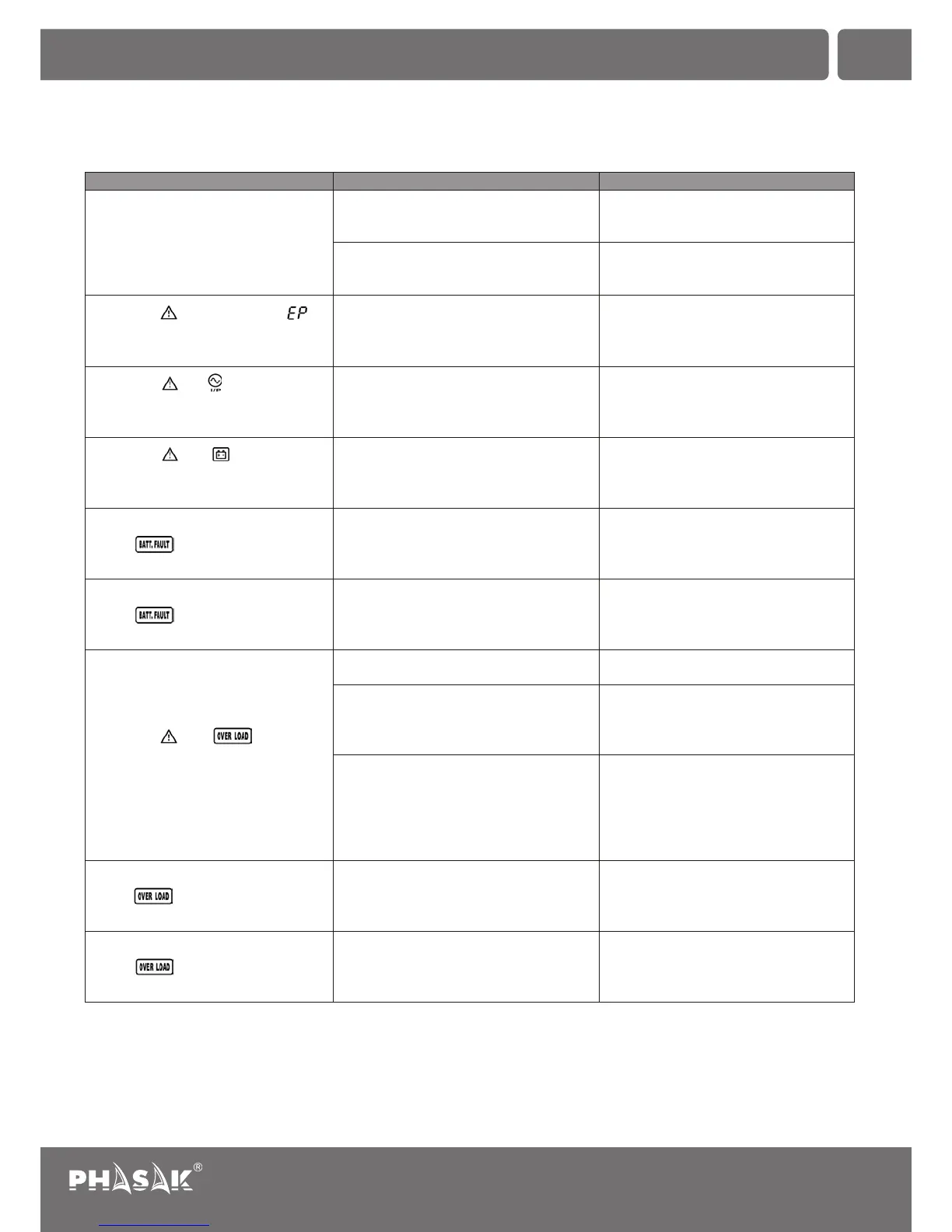 If the UPS system does not operate correctly, please solve the problem by using the table below.