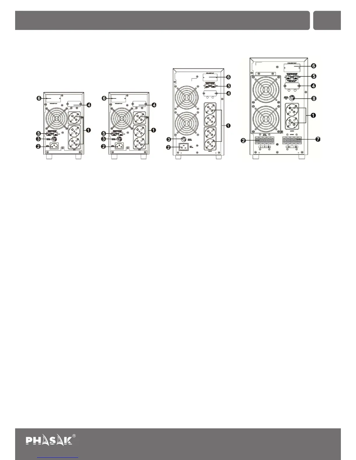 5. Protección contra sobretensión de red/fax/módem | 6. Slot inteligente de puerto RS-232 (SNMP o USB opcional)