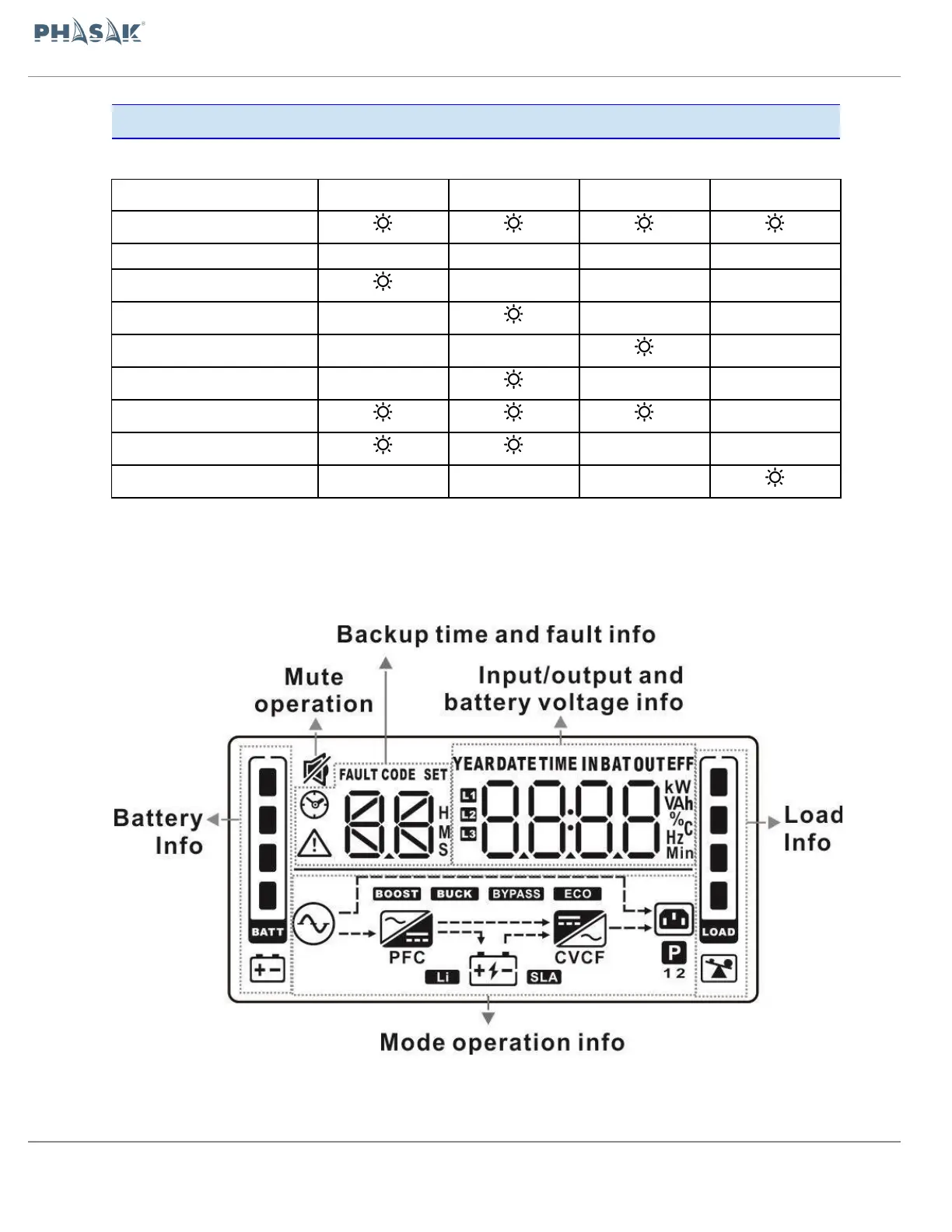 3.3. Indicadores LED e Painel LCD, UPS Phasak
