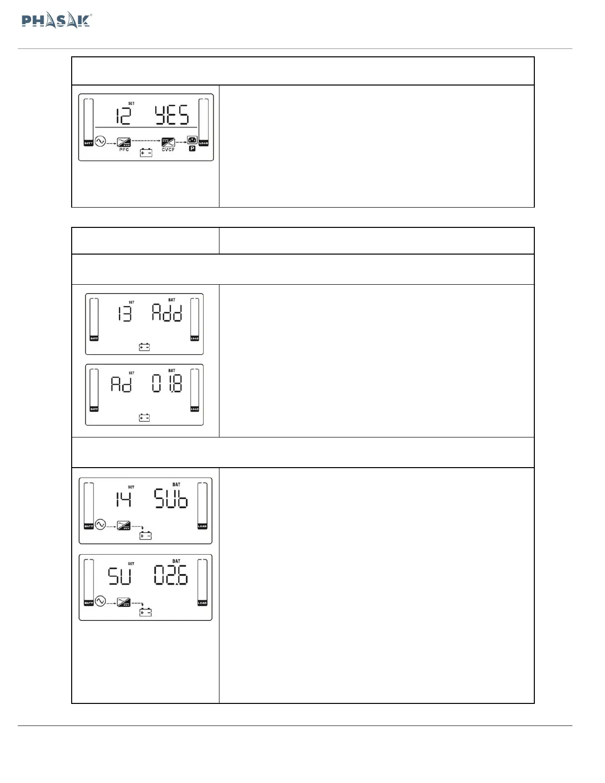 Então, você pode escolher Ad ou SU para ajustar a voltagem da bateria