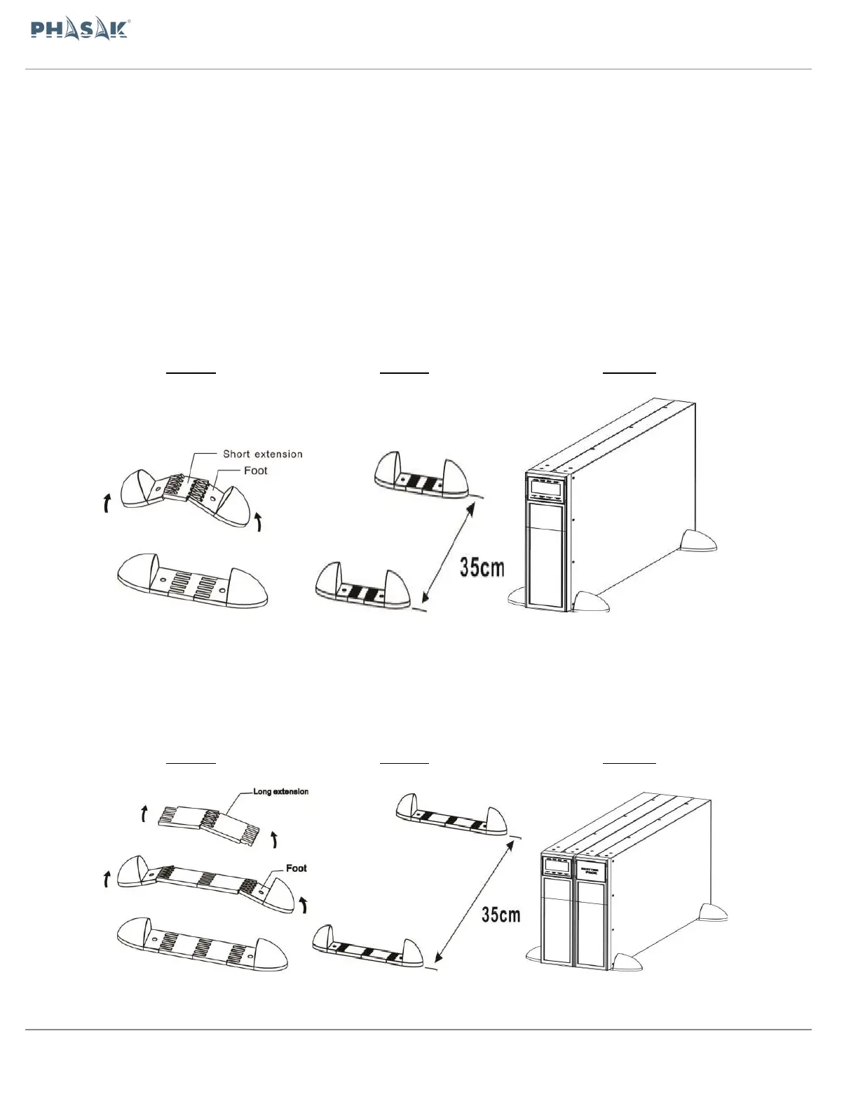 ● El sistema UPS se envía con dos juegos de pies y 6 extensiones (2 extensiones cortas más 4
